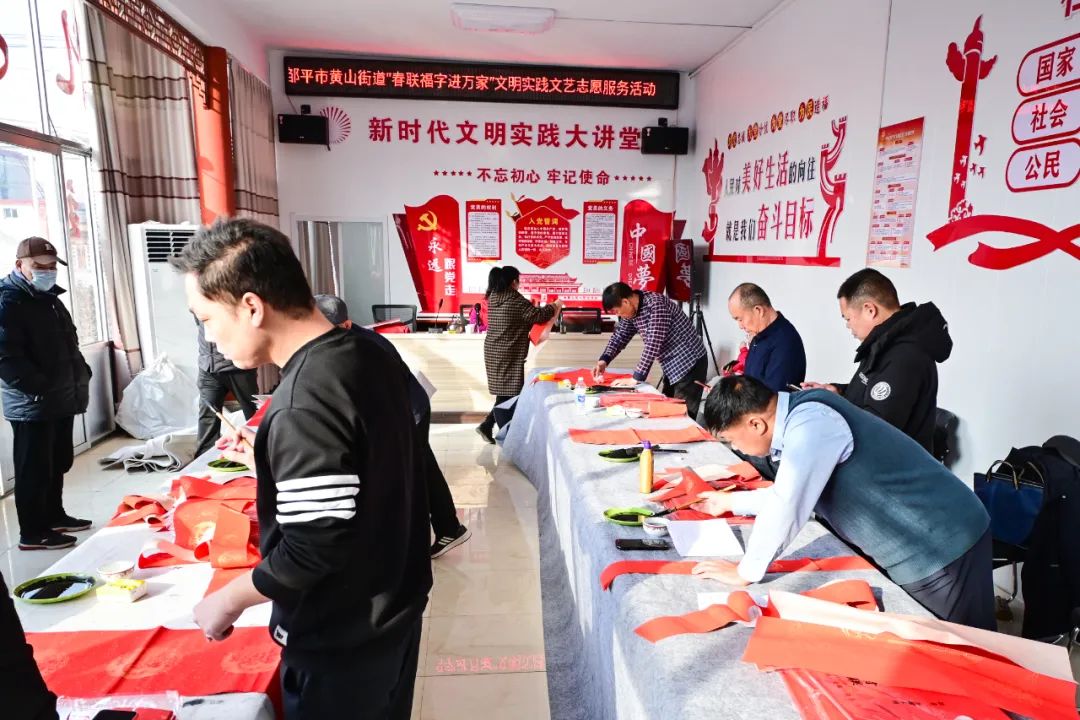新春佳節(jié)將至,為弘揚(yáng)傳統(tǒng)文化,深入基層、貼近群眾,助力鄉(xiāng)村文化旅游,營造歡樂吉祥、溫暖祥和的節(jié)日氛圍,1月29日,鄒平市黃山街道邀請(qǐng)鄒平市文聯(lián)、書協(xié)的書法家們,在黃山街道韓家村新時(shí)代文明實(shí)踐站開展了“萬福迎春”第十三屆山東省文聯(lián)新時(shí)代文明實(shí)踐“百縣千村”鄒平市書法惠民活動(dòng)暨黃山街道“春聯(lián)福字進(jìn)萬家”文明實(shí)踐文藝志愿服務(wù)活動(dòng),以實(shí)際行動(dòng)慶賀新春佳節(jié),為農(nóng)歷龍年春節(jié)增添喜慶氣氛。