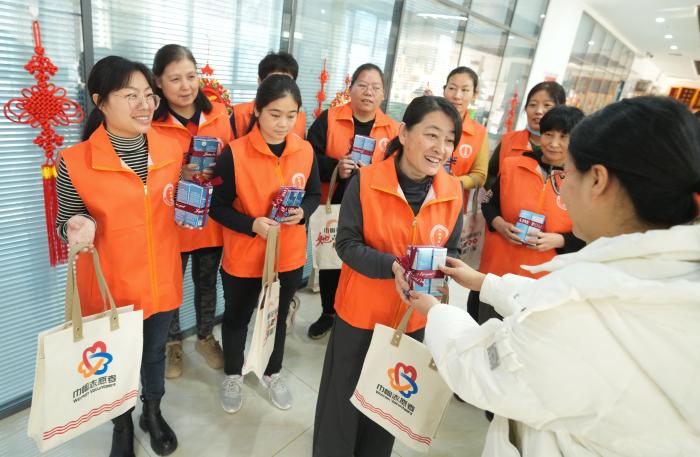 1月12日,鄒平市婦聯(lián)工作人員給養(yǎng)老工作人員送去慰問物品。