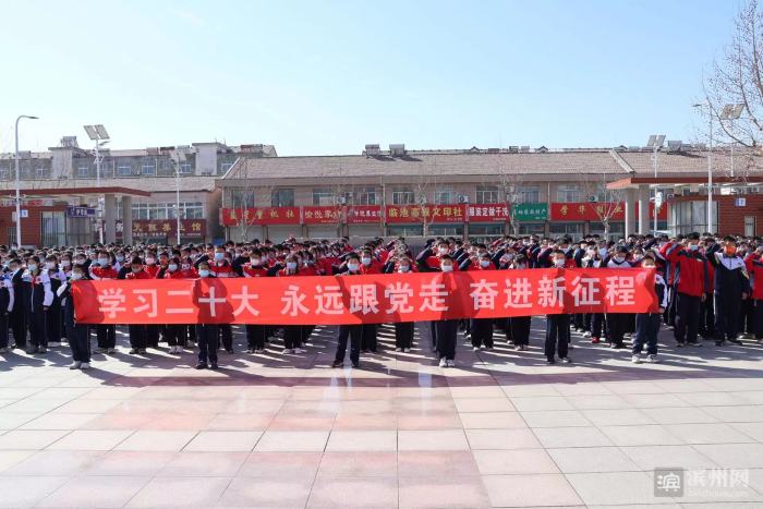 3月13日,鄒平市臨池鎮(zhèn)初級(jí)中學(xué)利用升國(guó)旗儀式,學(xué)習(xí)宣傳貫徹黨的二十大精神,扎實(shí)開(kāi)展主題教育實(shí)踐活動(dòng)。
