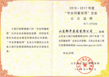 公司將以誠(chéng)信建設(shè)作為企業(yè)的發(fā)展核心,為建設(shè)誠(chéng)信鄒平做出新的貢獻(xiàn)。