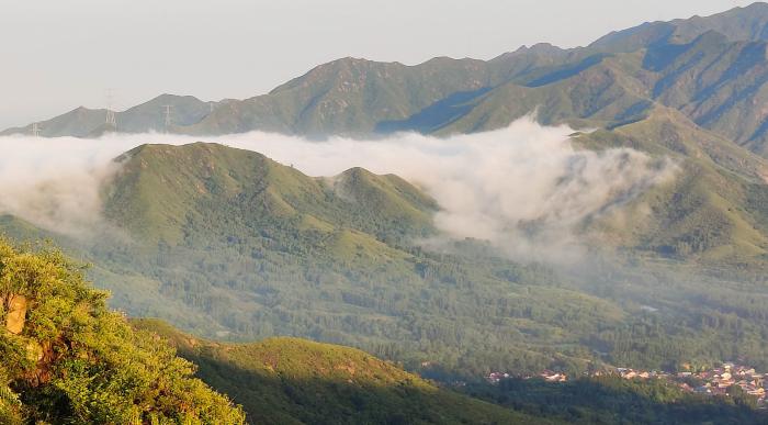 8月28日,拍到的鄒平市西董街道長白山區(qū)云霧繚繞景象。