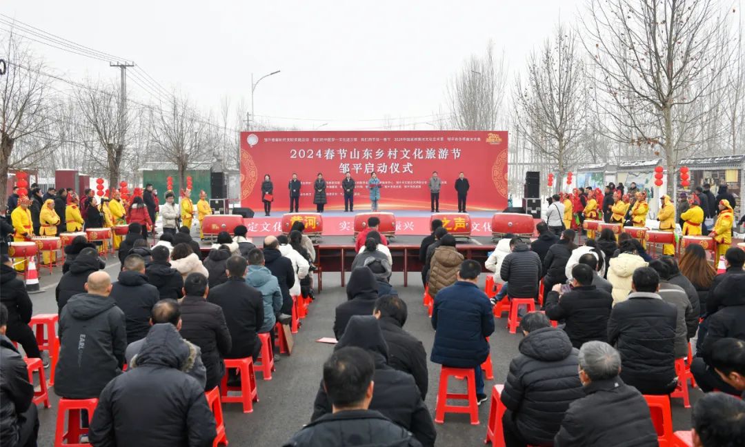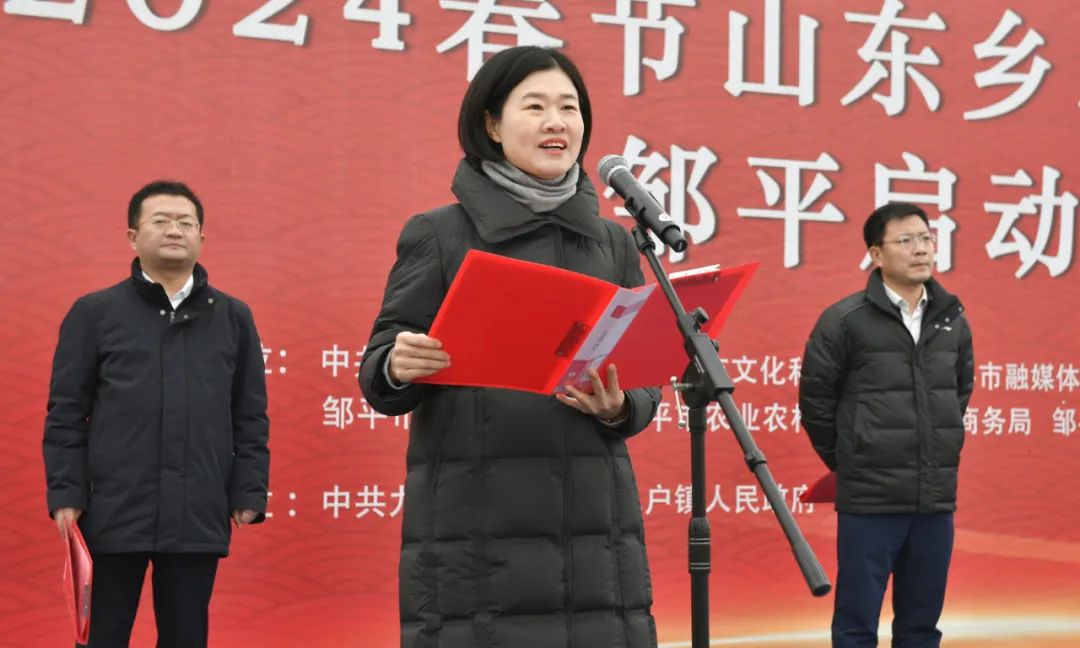 1月18日,2024春節(jié)山東鄉(xiāng)村文化旅游節(jié)鄒平啟動(dòng)儀式在九戶鎮(zhèn)新時(shí)代文明實(shí)踐所舉行,同步舉行2024年文化科技衛(wèi)生三下鄉(xiāng)和冬季黃河大集啟動(dòng)儀式。鄒平市委常委、宣傳部部長(zhǎng)、統(tǒng)戰(zhàn)部部長(zhǎng)張欣,鄒平市人大常委會(huì)黨組成員、副主任提名候選人董麗,鄒平市政協(xié)副主席曲坤,鄒平市委宣傳部副部長(zhǎng)、市融媒體中心主任孫春雷,鄒平市委宣傳部副部長(zhǎng)、文聯(lián)主席成玲玲,鄒平市文化和旅游局黨組書(shū)記張紹鵬,九戶鎮(zhèn)黨委副書(shū)記、鎮(zhèn)長(zhǎng)張維奇參加儀式。
